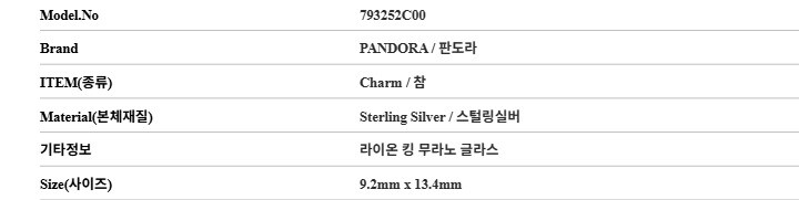 [명품] 판도라 793252C00 디즈니 라이온 킹 무라노 글라스 실버 참