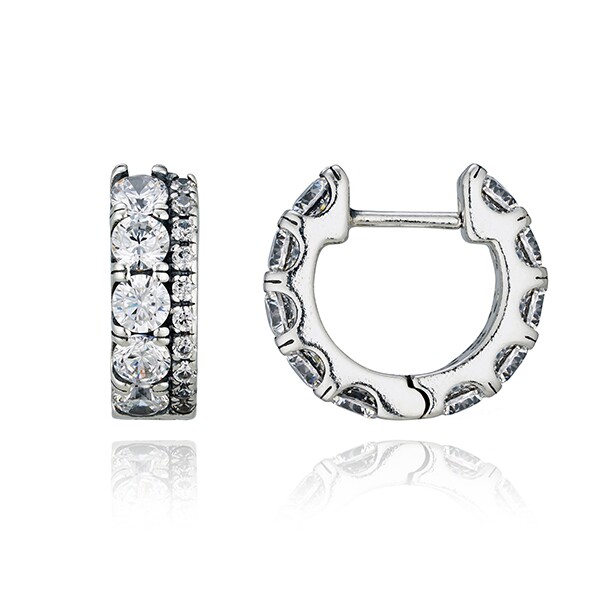 [명품] 판도라 290058C01 타임리스 더블 밴드 파베 후프 실버 귀걸이