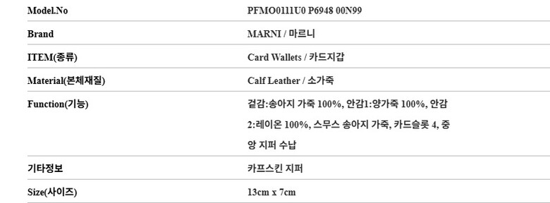- #리본즈코리아 #PFMO0111U0P694800N99 #[명품] #마르니 #PFMO0111U0 #P6948 #00N99 #트렁카루 #카프스킨 #지퍼 #카드지갑 #여성 #지갑 #카드/명함지갑 #카드지갑홀더