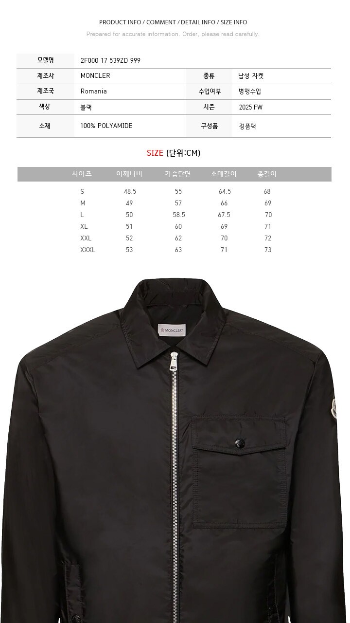 몽클레어 25FW CAMICIA 로고 패치 자켓 블랙 2F000 17 539ZD 999