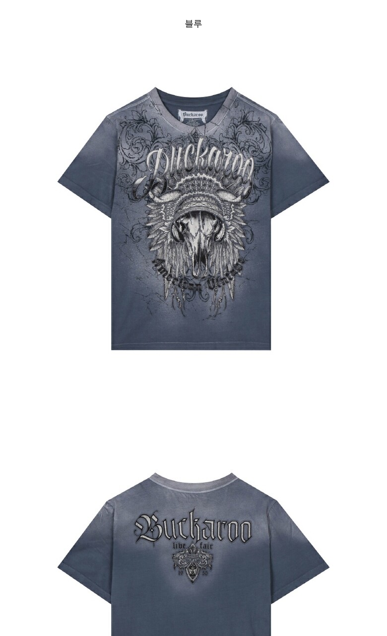 [버커루] 남성) 싱글 빈티지 스컬아플리케 반팔 티셔츠 (B252TS392P)