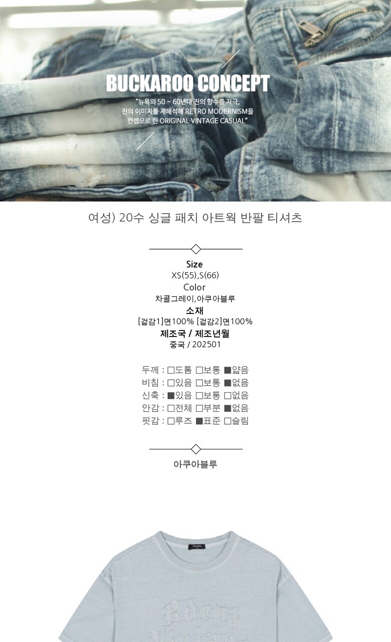 [버커루] 여성) 20수 싱글 패치 아트웍 반팔 티셔츠 (B252TS516P)