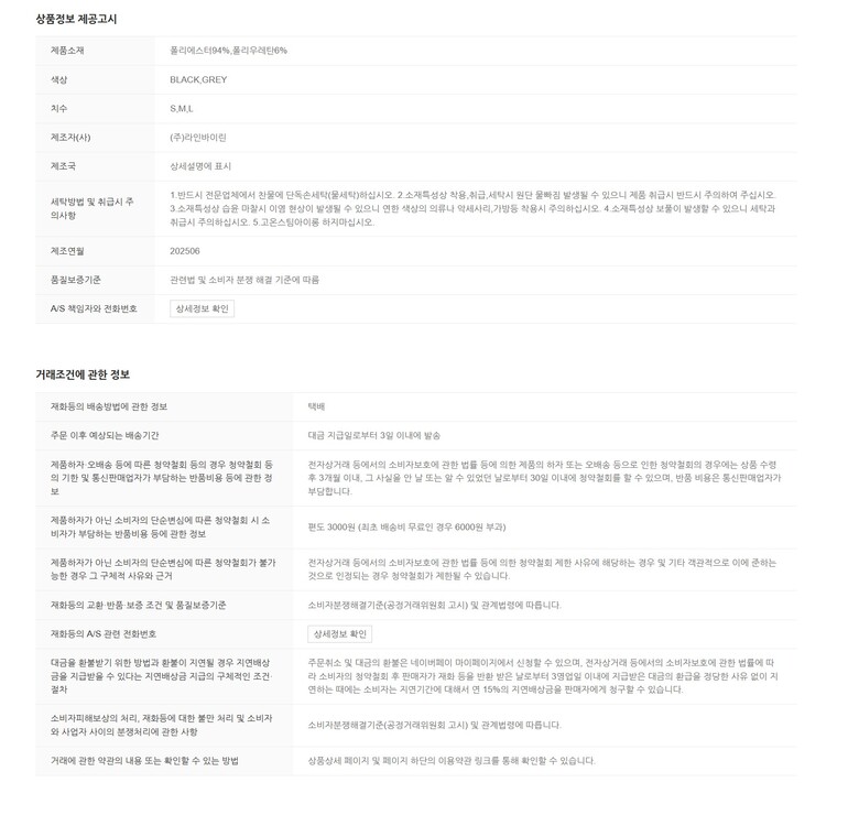 6. 세탁방법 및 취급시 주의사항 | 상품상세참조 |
