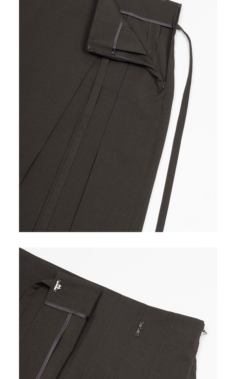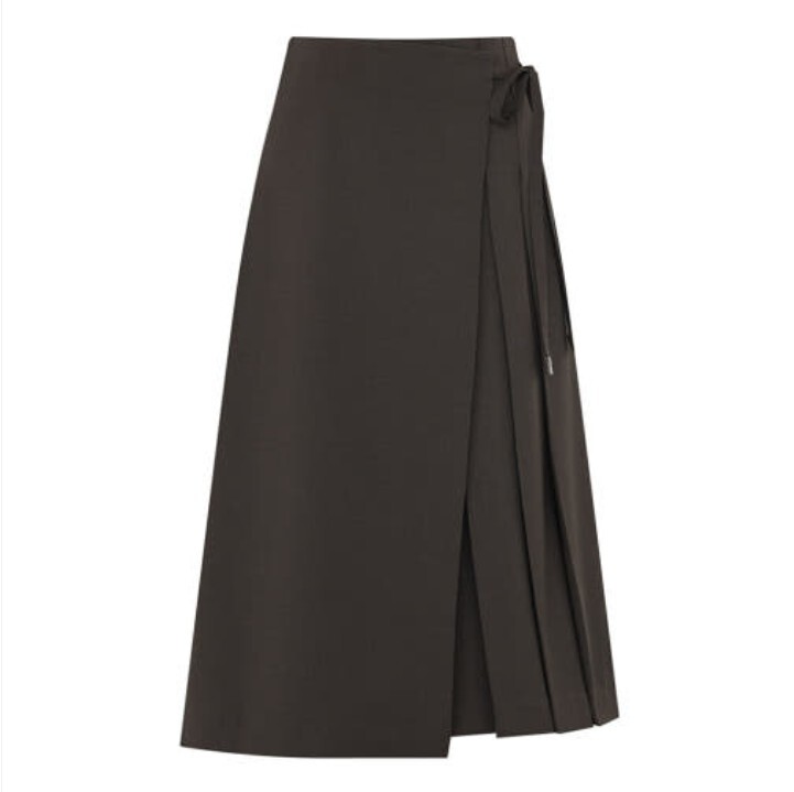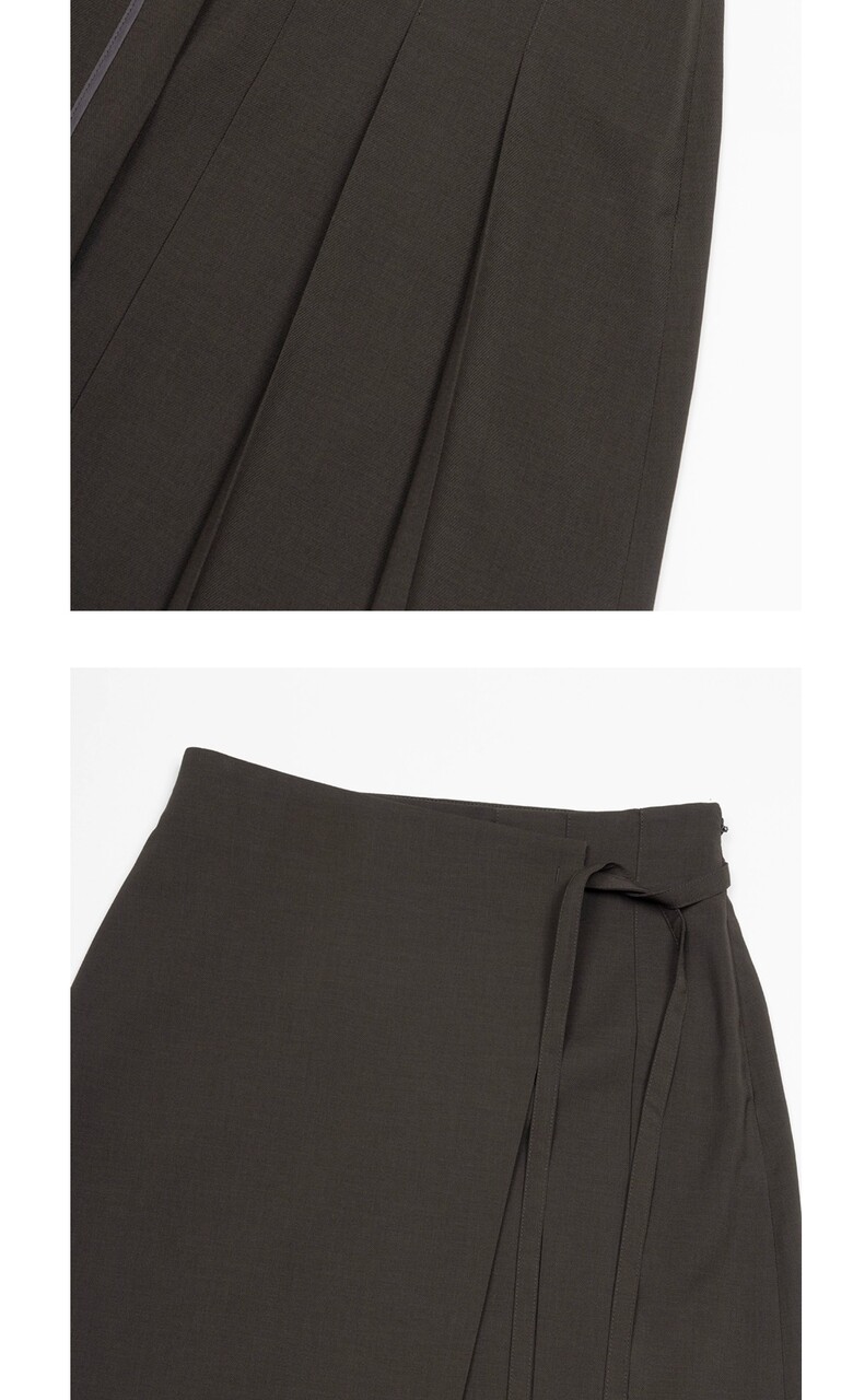 포멀하면서 페미닌한 무드가 느껴지는 랩 스커트입니다.
