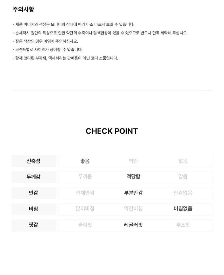 | 10. 취급방법 및 취급시 주의사항, 안전표시 (주의, 경고 등) | [겉감1]나일론82% 폴리우레탄18% [겉감2]나일론90% 폴리우레탄10% [안감]폴리에스터100% |