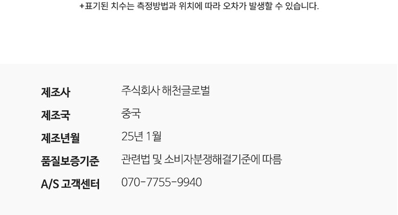 1. 제품 소재 (섬유의 조성 또는 혼용률을 백분율로 표시, 기능성인 경우 성적서 또는 허가서) | 상품 상세페이지 참조 |