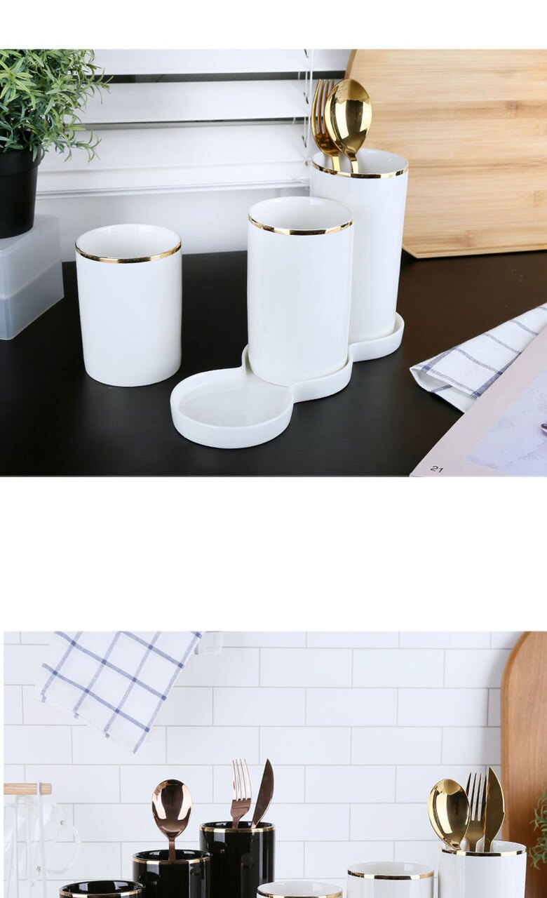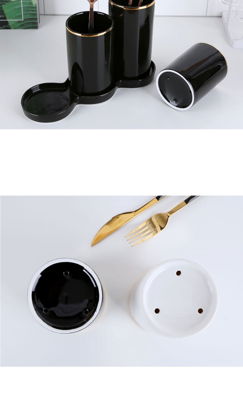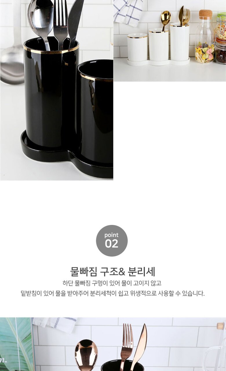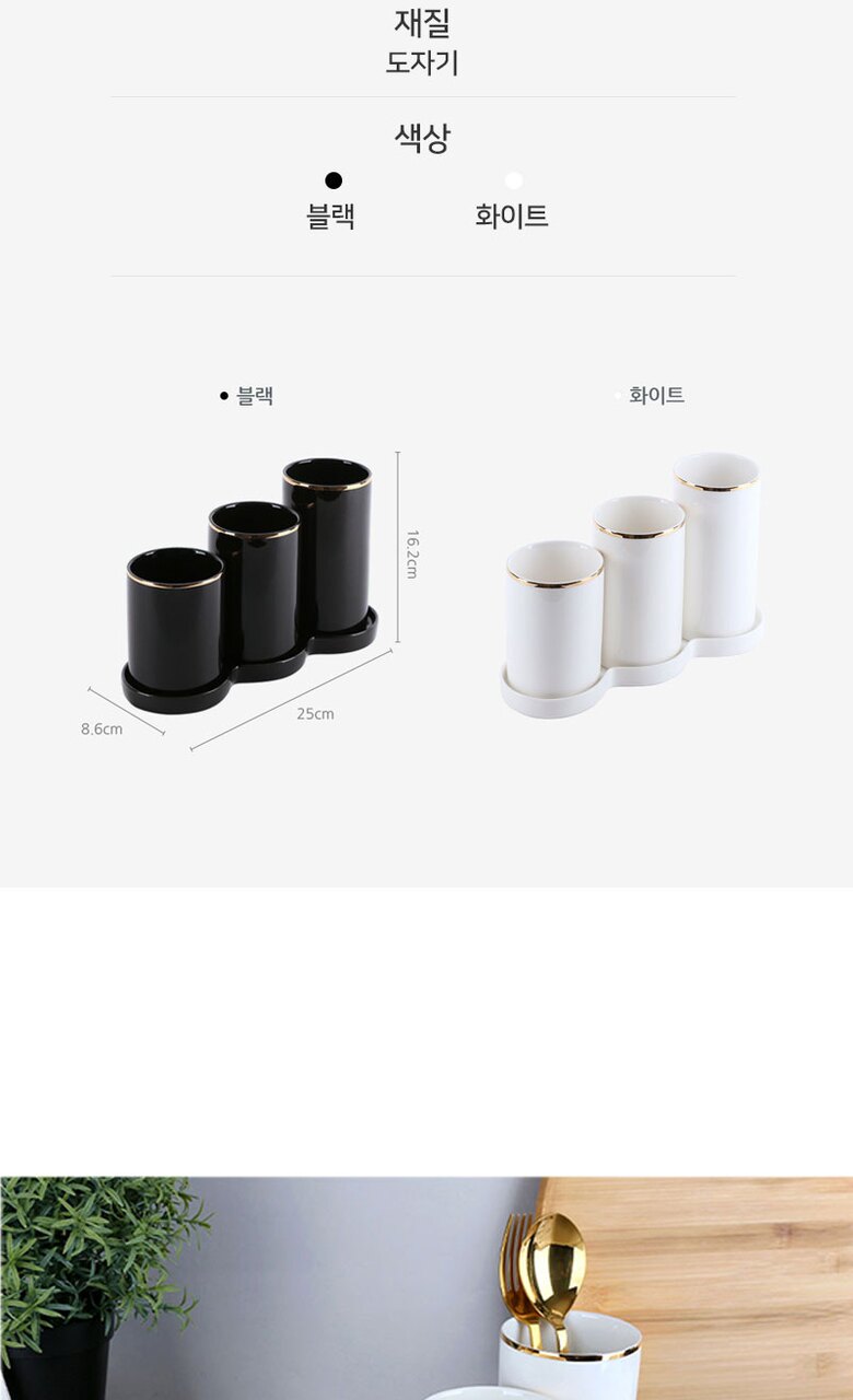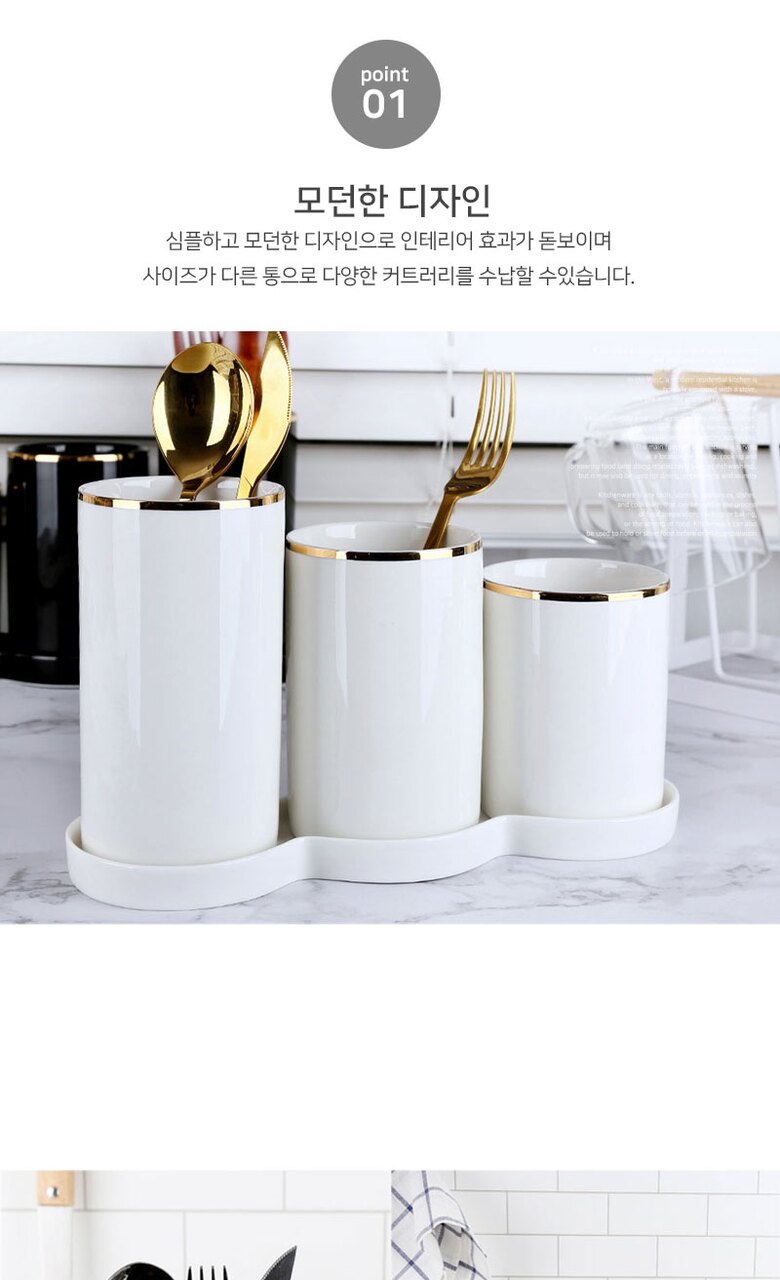 카밀리아 모던 도자기 물빠짐 수저통 3구세트