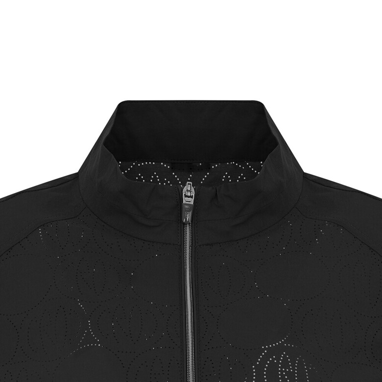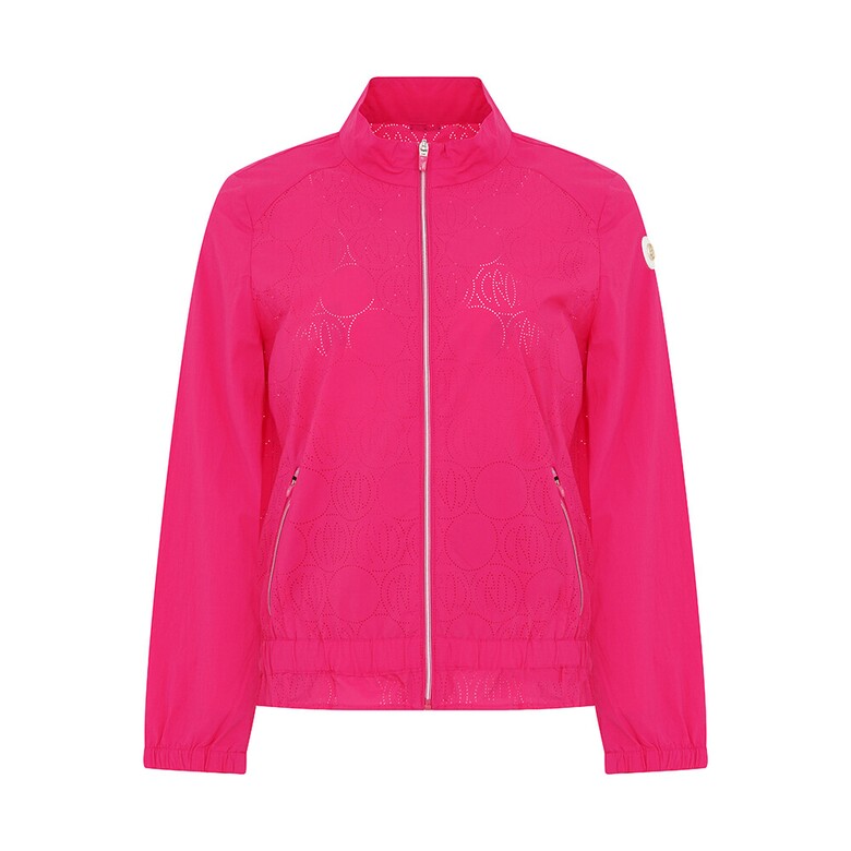 가볍고 신축성이 우수한 나일론 코튼 스판 소재의 집업 점퍼. 펀칭원단과 솔리드 원단이 믹스되어 착용시 고급스러우며 밑단의 셔링이 포인트로 캐주얼함이 돋보이는아이템.