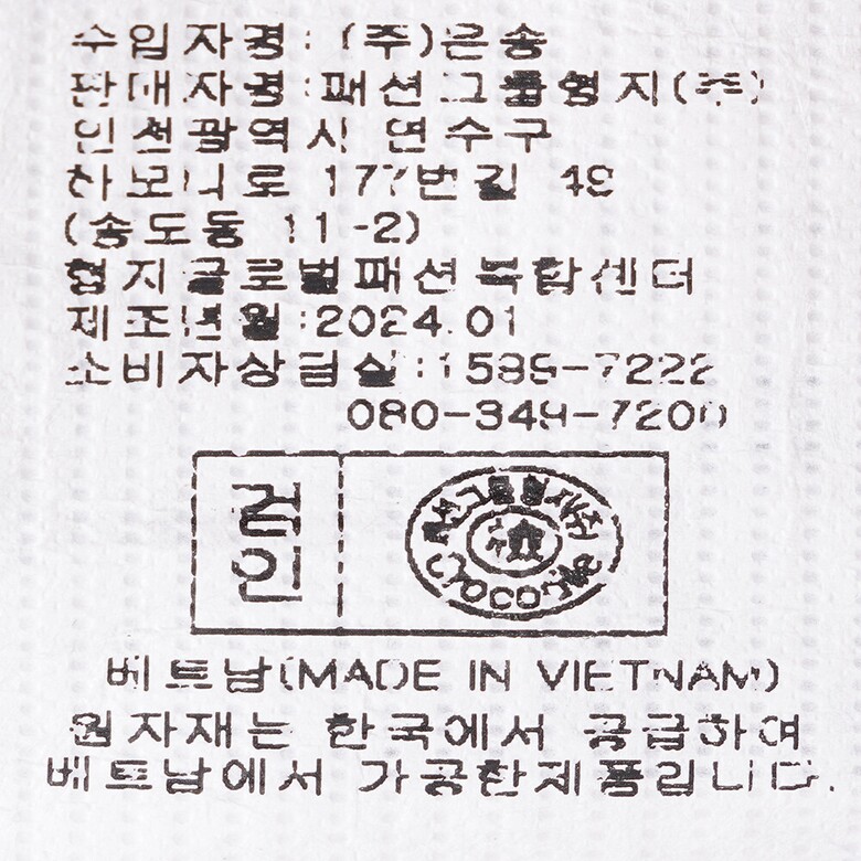 1. 제품 소재 (섬유의 조성 또는 혼용률을 백분율로 표시, 기능성인 경우 성적서 또는 허가서) | 상품상세참조 |