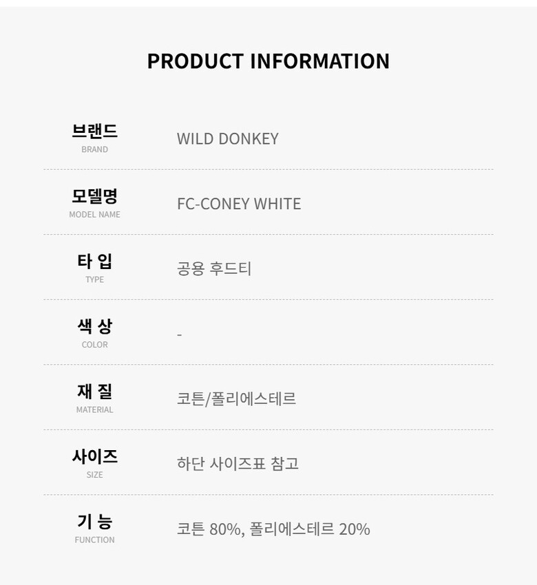 와일드동키 FC-CONEY WHITE 공용 후드티