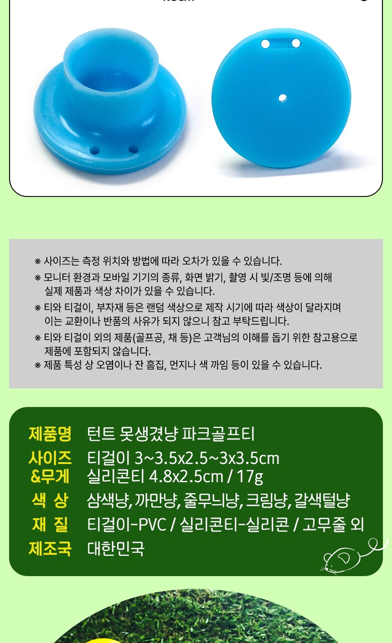 1. 품명 및 모델명 | 못생겼냥 파크골프티걸이와 실리콘티 |