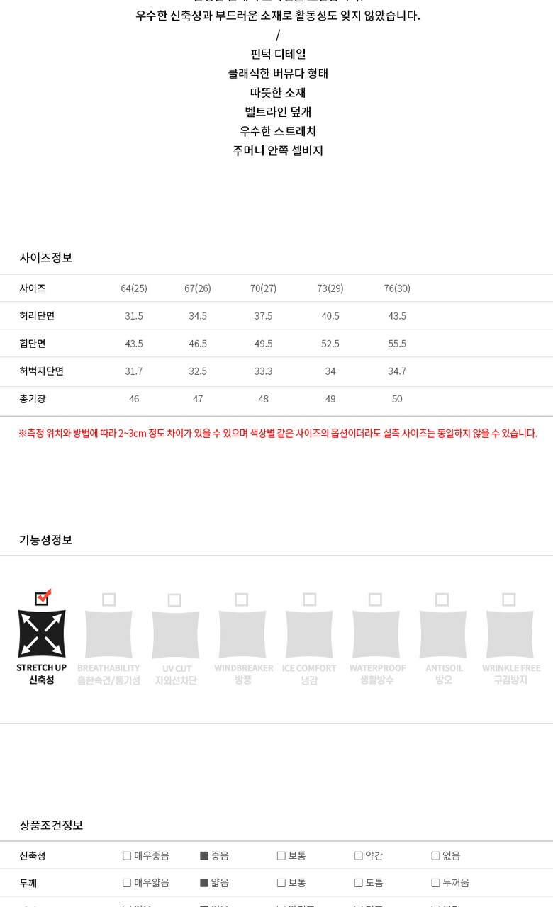 1. 제품 소재 (섬유의 조성 또는 혼용률을 백분율로 표시, 기능성인 경우 성적서 또는 허가서) | 겉감:폴리에스터50%,울50% |