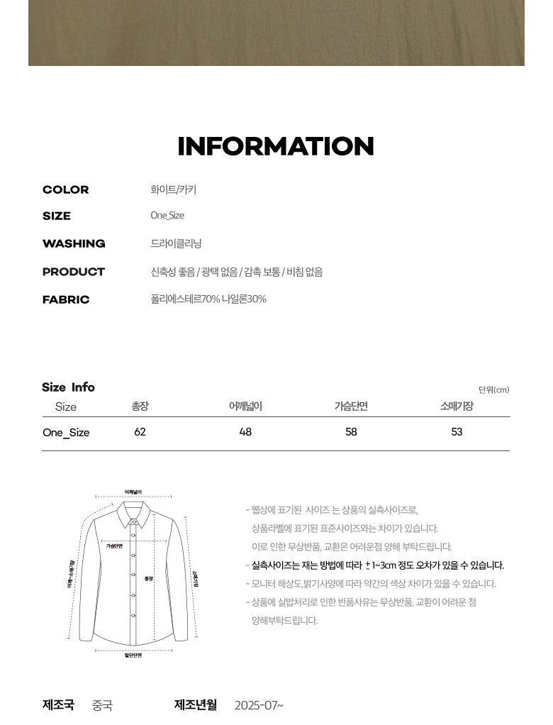 • 처음 배송된 상품상태와 다를 경우(세탁/착용 후 외출하신 경우) 반품이 불가합니다.