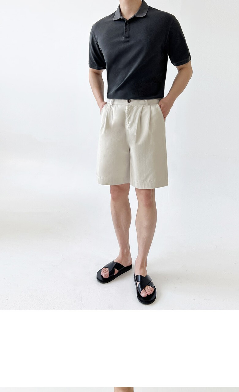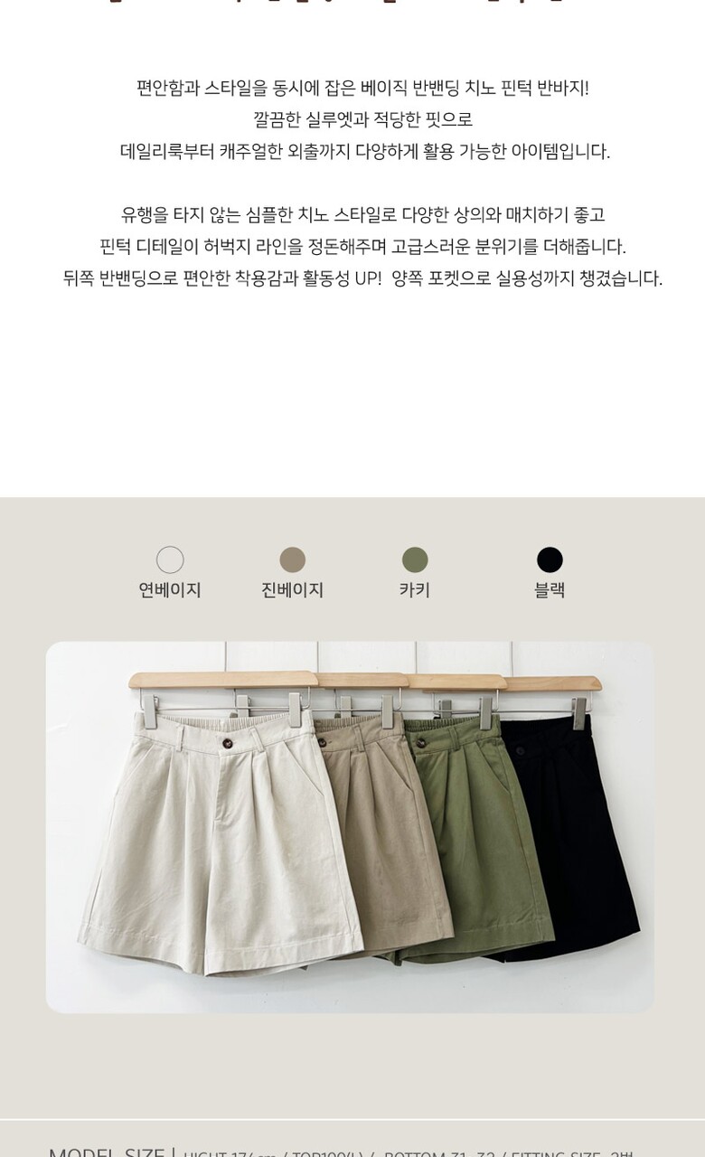 골피아 남자 베이직 반밴딩 코튼 치노 핀턱 반바지 데일리 바지
