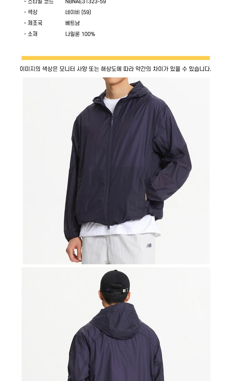 뉴발란스 공용 ESS 경량 우븐 바람막이 자켓 NBNAE31323-59