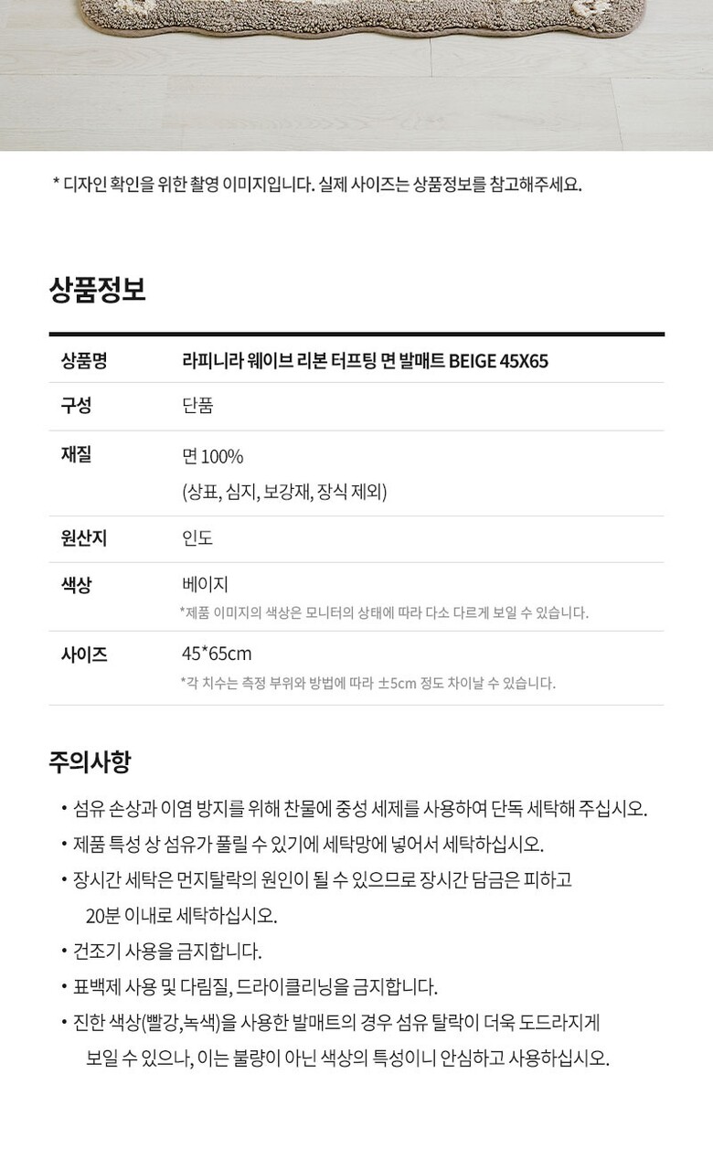 모던하우스 라피니라 웨이브 리본 터프팅 면 발매트 BEIGE 45X65 BG9925020