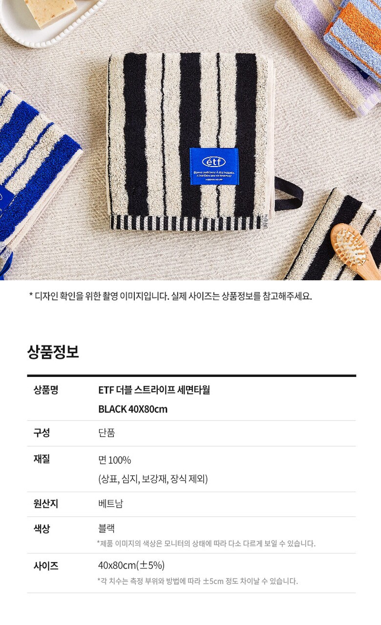 모던하우스 ETF 더블 스트라이프 세면타월 BLACK 40X80cm 190g BG0125069