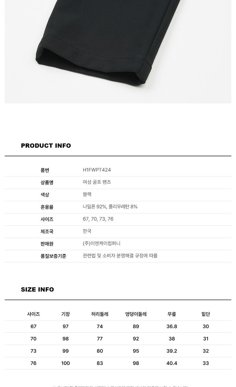 헬베스코 여성 스판 스트레이트 기모 골프바지 H1FWPT424