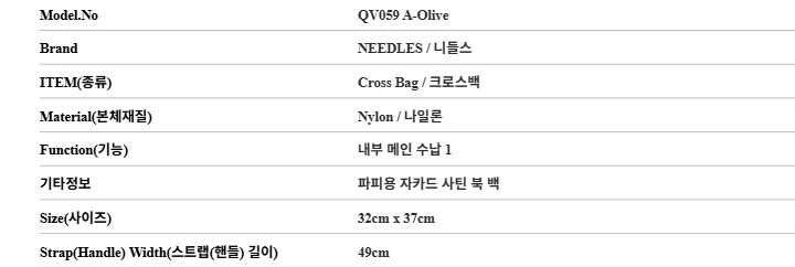 니들스 QV059 A-Olive 파피용 자카드 사틴 북 백 크로스백