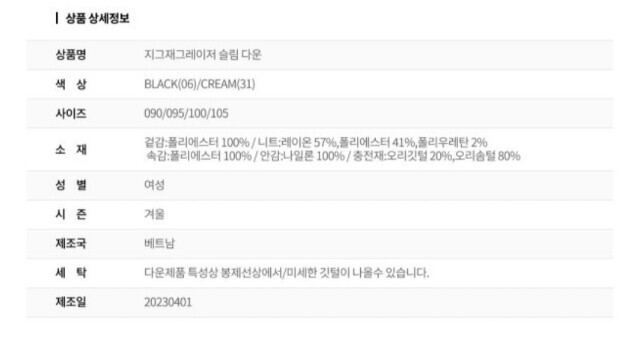 | 1. 제품 소재 (섬유의 조성 또는 혼용률을 백분율로 표시, 기능성인 경우 성적서 또는 허가서) | 상품상세참조 |
