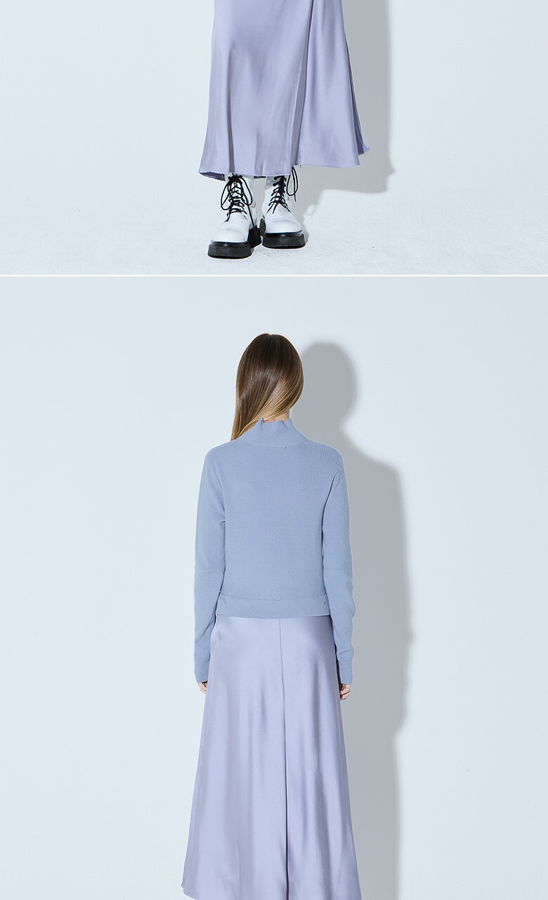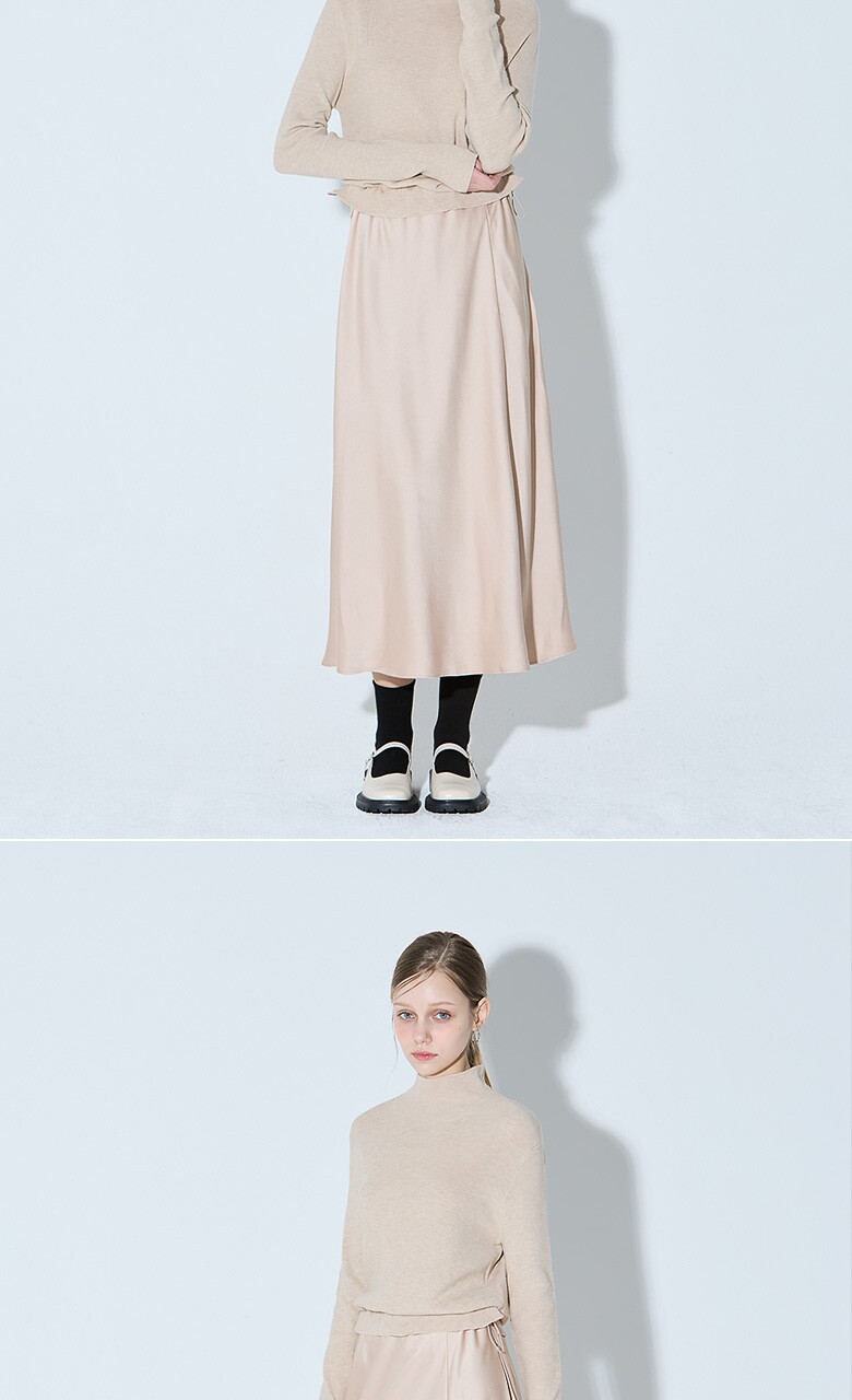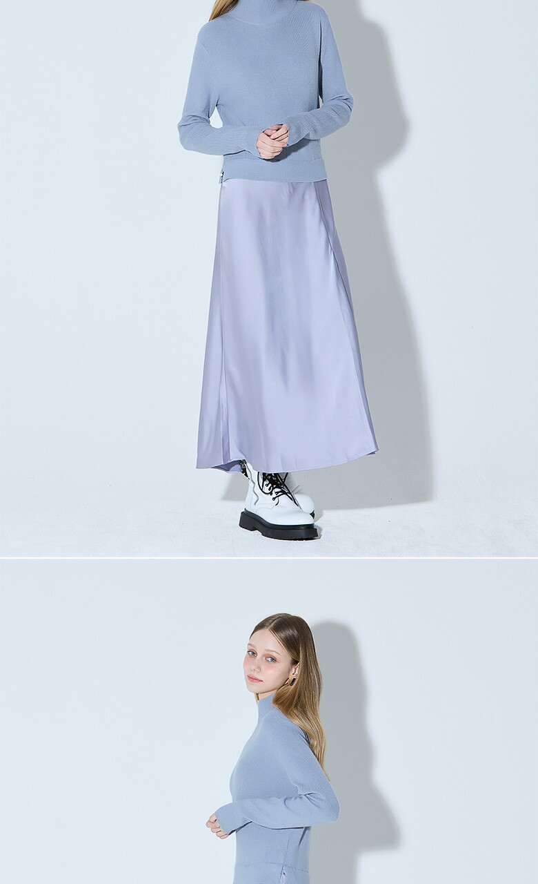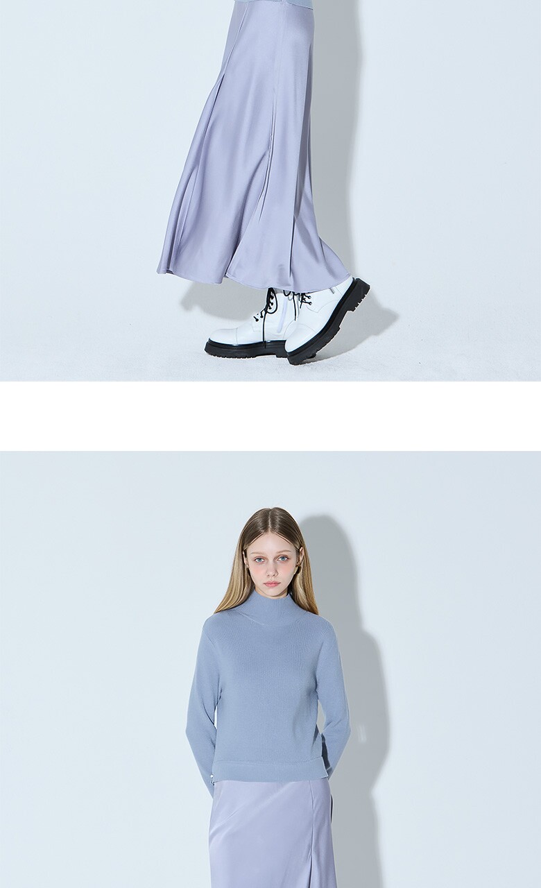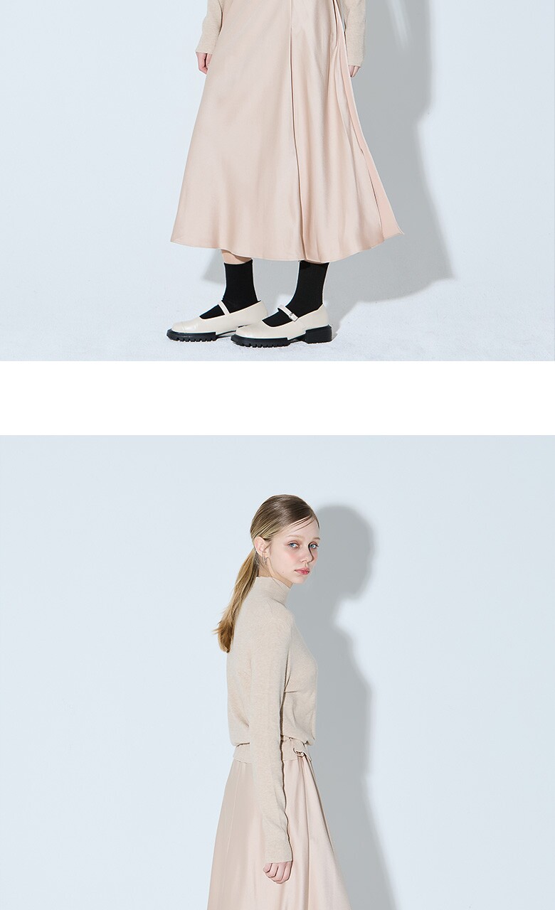 ITEM : 폴라 니트배색 새틴 트임 원피스