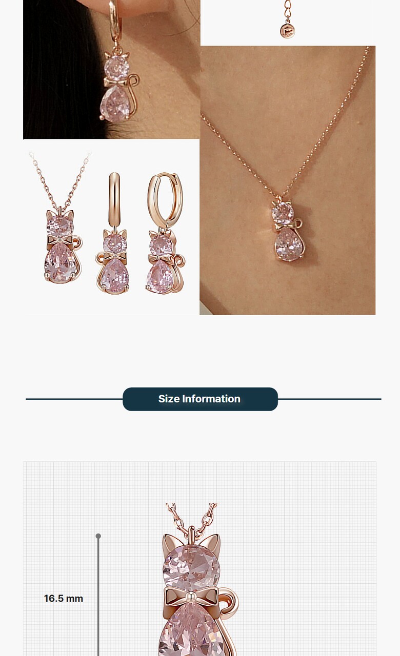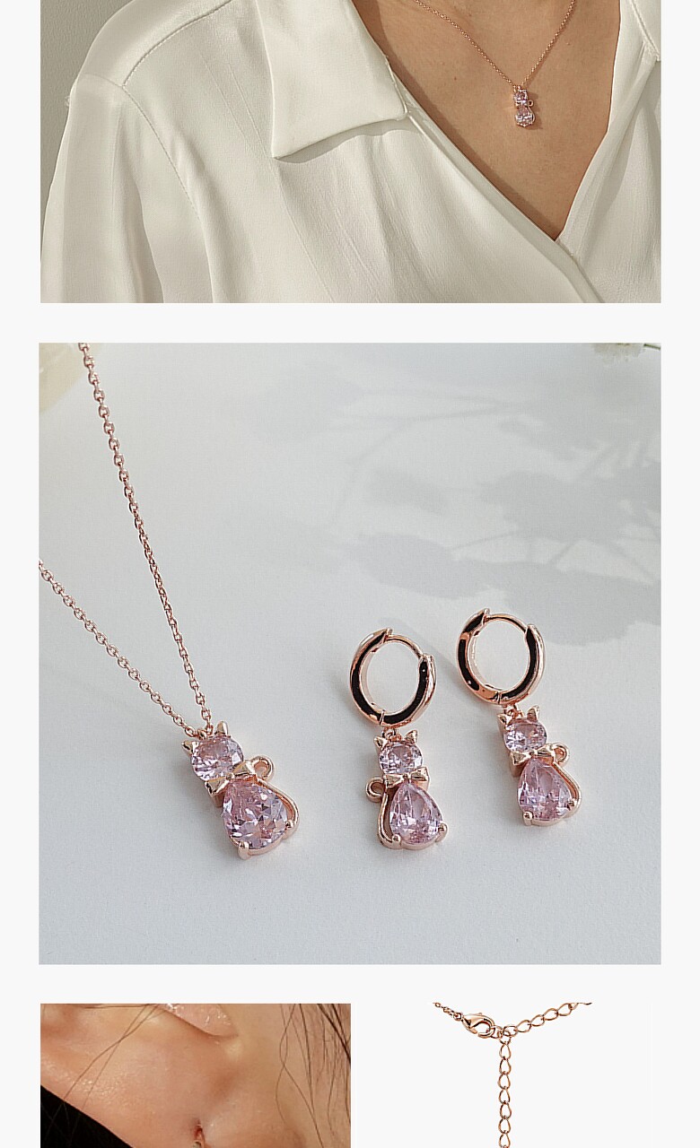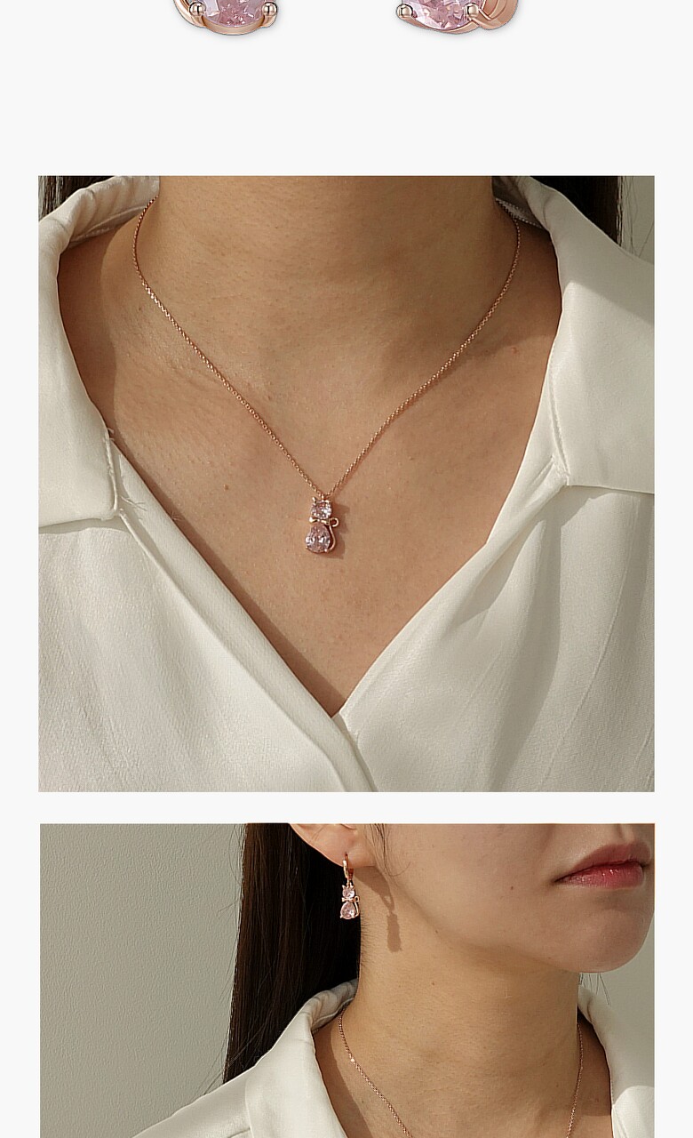 페리스 목걸이&귀걸이 2종 세트 MG365366 14K Gold Plated (핑크큐빅)