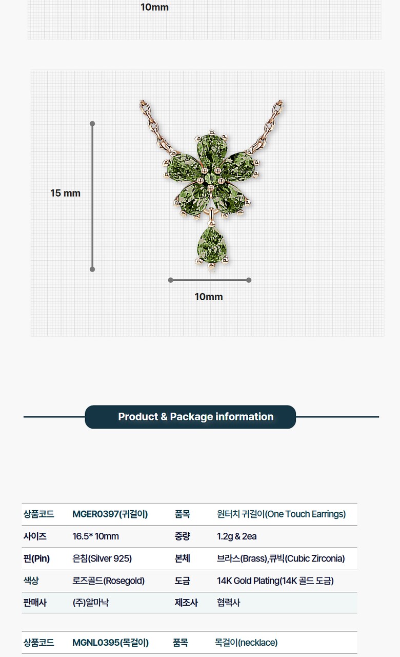 칼리아 목걸이&귀걸이 2종 세트 MG395397 14K Gold Plated (그린큐빅)