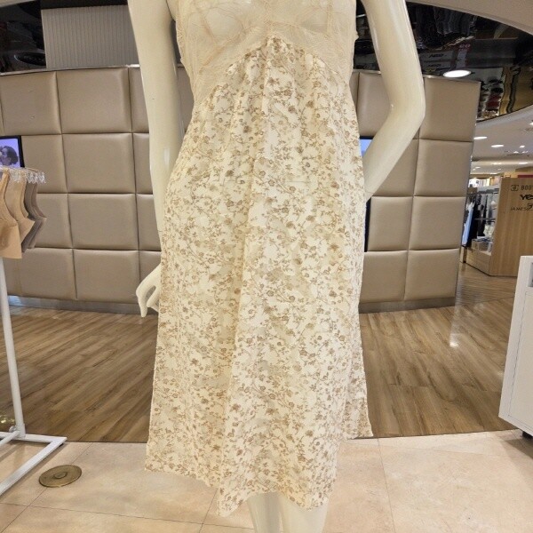 바바라 베이지색상 번아웃플라워프린트원단풀슬립