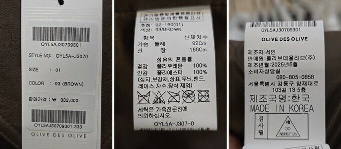 · 안감 : ■ 전체 □ 부분 □ 없음