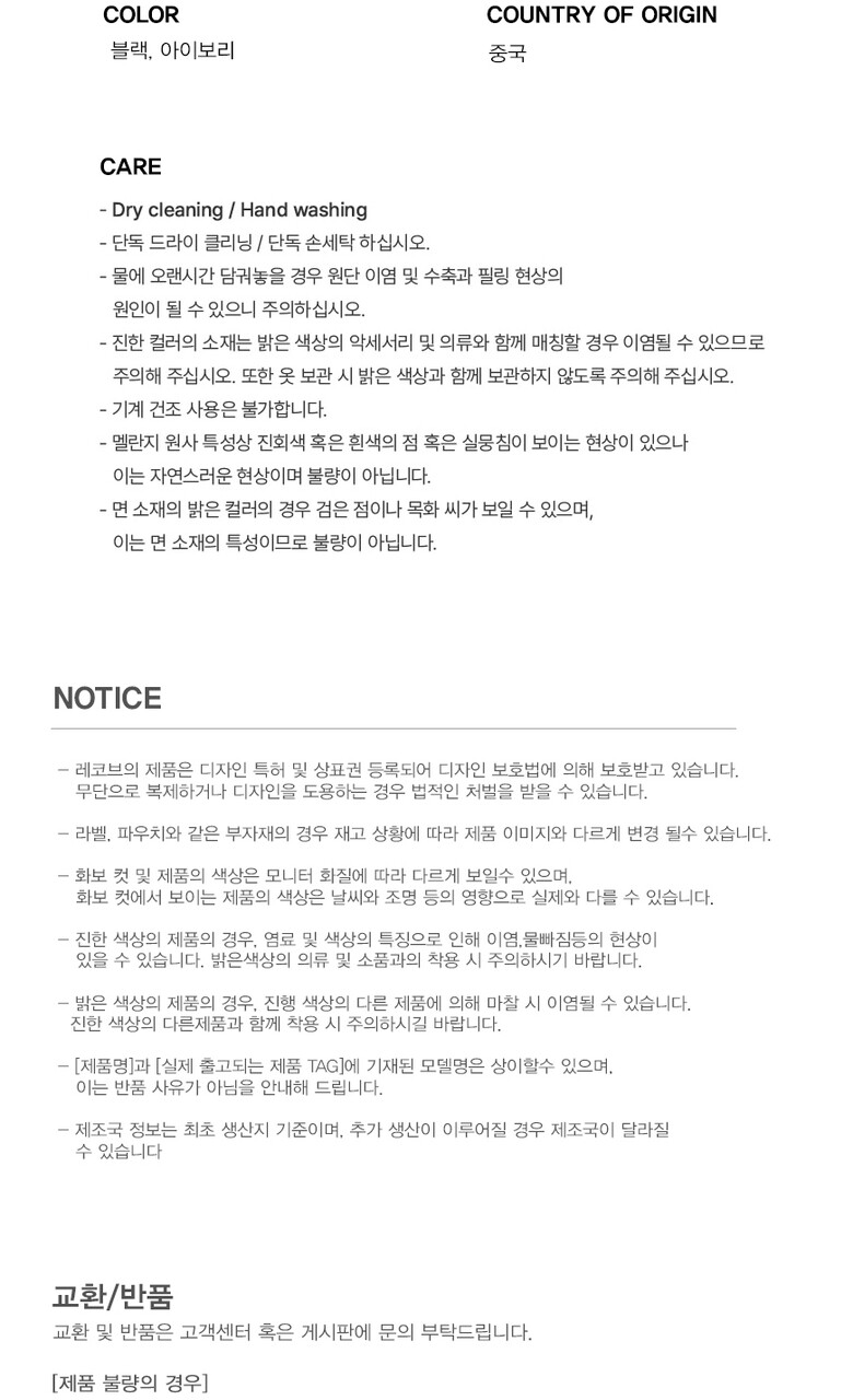 1. 제품 소재 (섬유의 조성 또는 혼용률을 백분율로 표시, 기능성인 경우 성적서 또는 허가서) | 상세페이지 참조 |