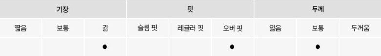 · 핏감 : □ 루즈 ■ 표준 □ 슬림