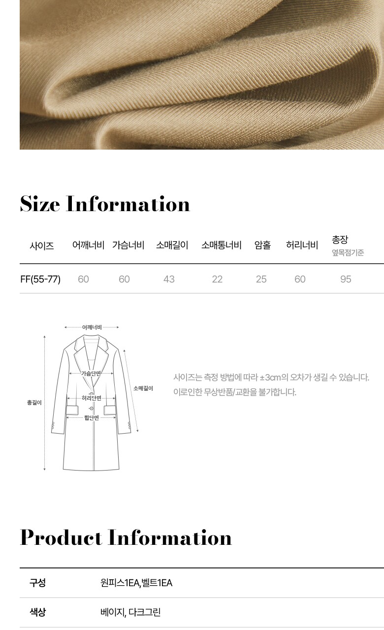 • 처음 배송된 상품상태와 다를 경우(세탁/착용 후 외출하신 경우) 반품이 불가합니다.