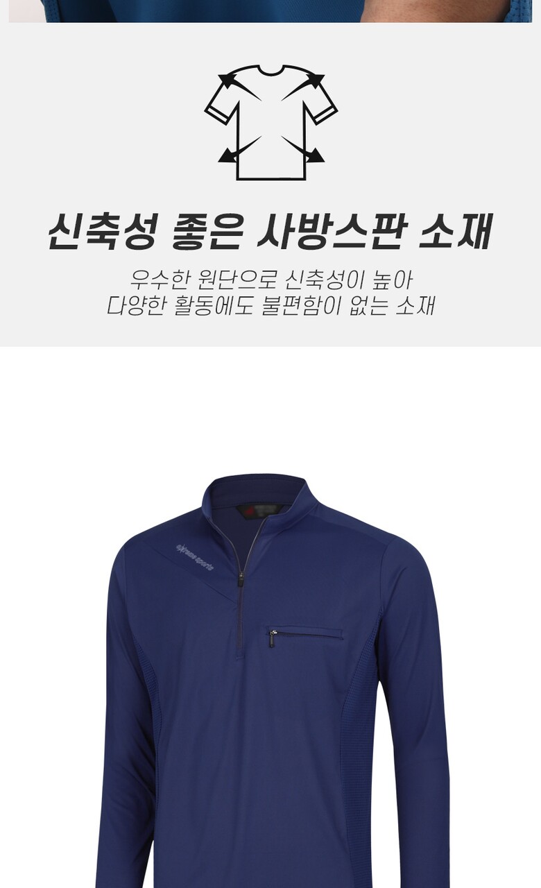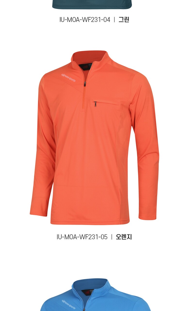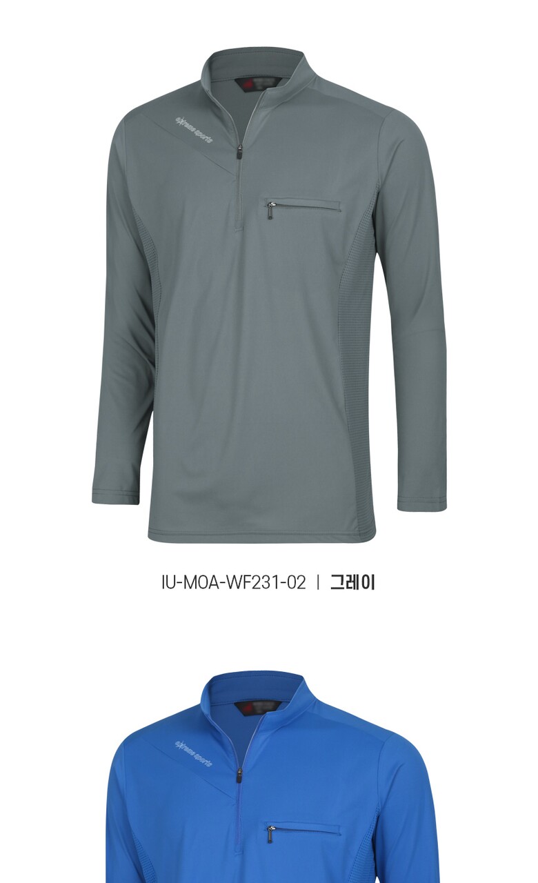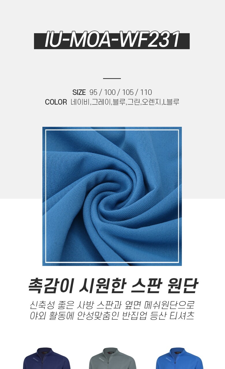 남성 신축성 좋은 사이드 메쉬 반집업 등산티셔츠 IU-MOA-WF231