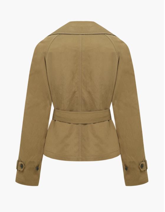 클래식한 무드에 세련된 실루엣을 더한 벨티드 숏 트렌치 자켓입니다.