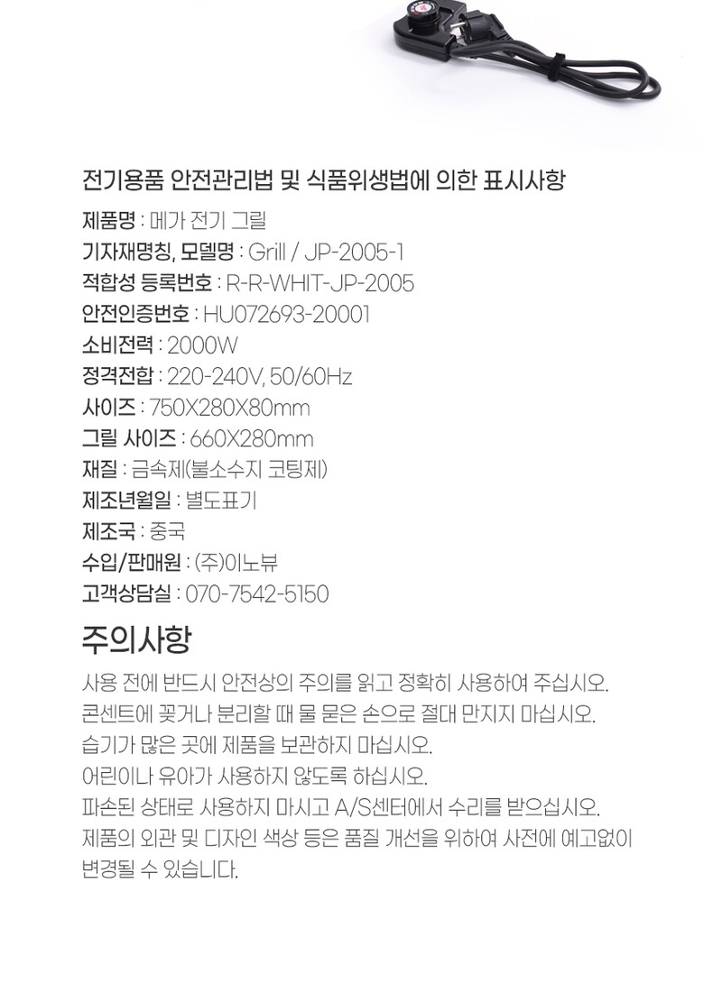 | 3. 전기용품 안전인증 필 유/무 | 유 |