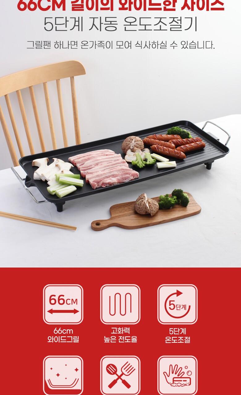 [디라이프] 75cm 메가 와이드 전기그릴 (손잡이포함) JP-2005-1