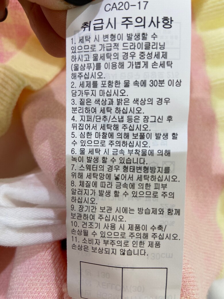 • 처음 배송된 상품상태와 다를 경우(세탁/착용 후 외출하신 경우) 반품이 불가합니다.
