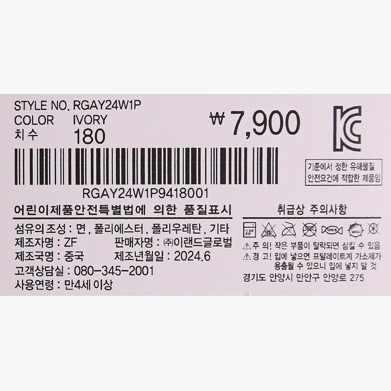 | 1. 제품 소재 (섬유의 조성 또는 혼용률을 백분율로 표시, 기능성인 경우 성적서 또는 허가서) | 상품상세참조 |