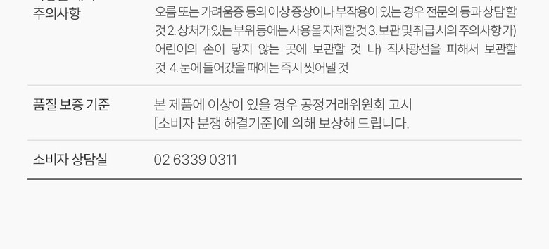 9. 사용 시 주의사항 | 상세페이지 참조 |
