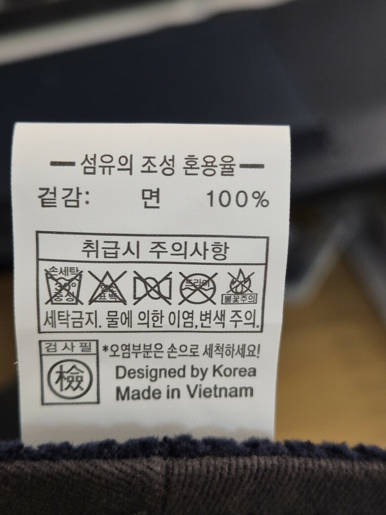 | 2. 소재 | 겉감:면 100% |