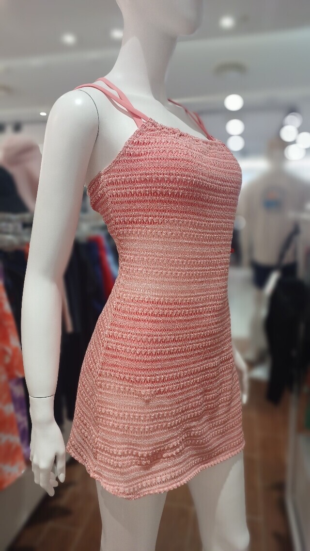 심플한 솔리드 비키니와 니트짜임이 돋보이 시스루썬드레스로 구성된 3pcs 비치수영복입니다.