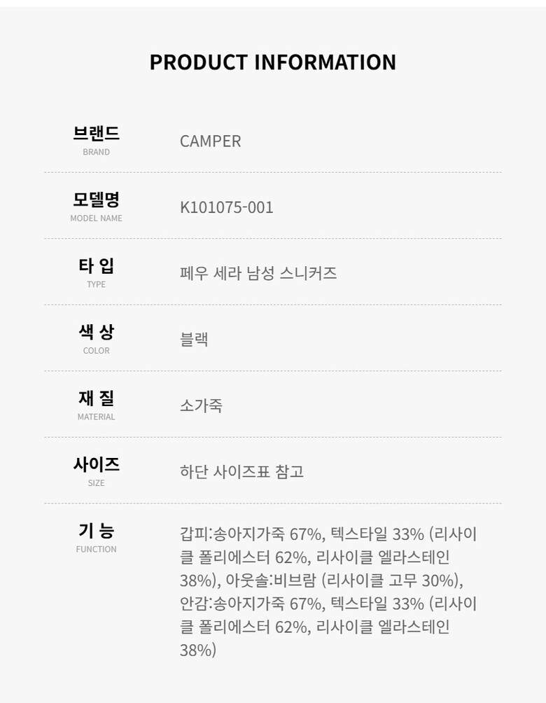 4. 제조사 캠퍼/(주)언커먼레이블-병행수입