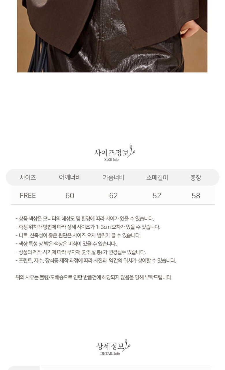• 처음 배송된 상품상태와 다를 경우(세탁/착용 후 외출하신 경우) 반품이 불가합니다.
