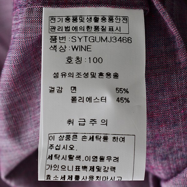 | 1. 제품 소재 (섬유의 조성 또는 혼용률을 백분율로 표시, 기능성인 경우 성적서 또는 허가서) | 면55%폴리에스터45% |