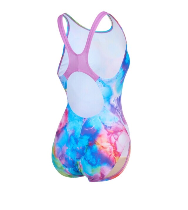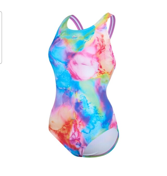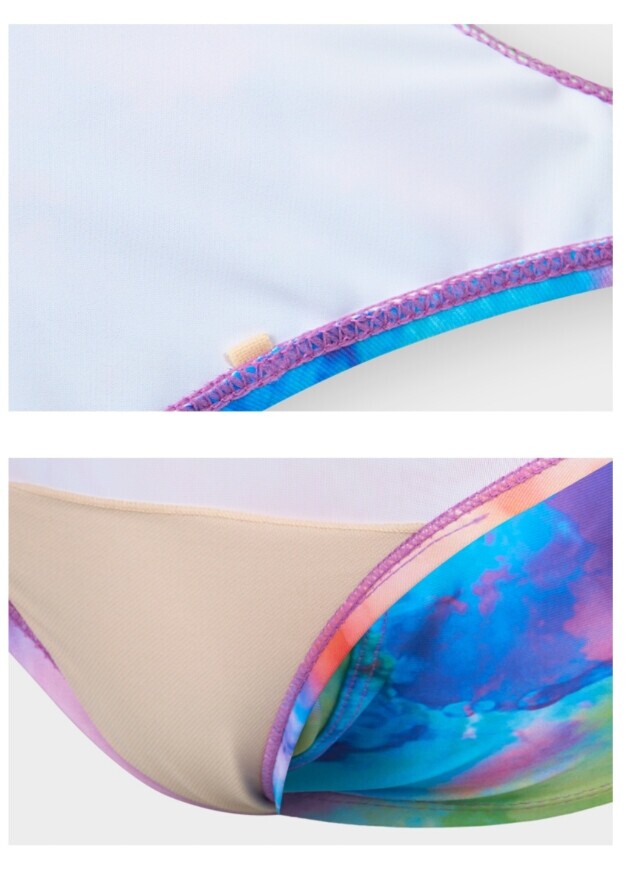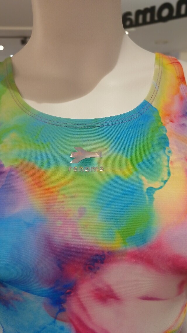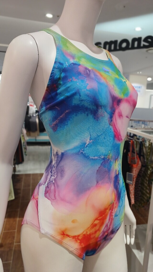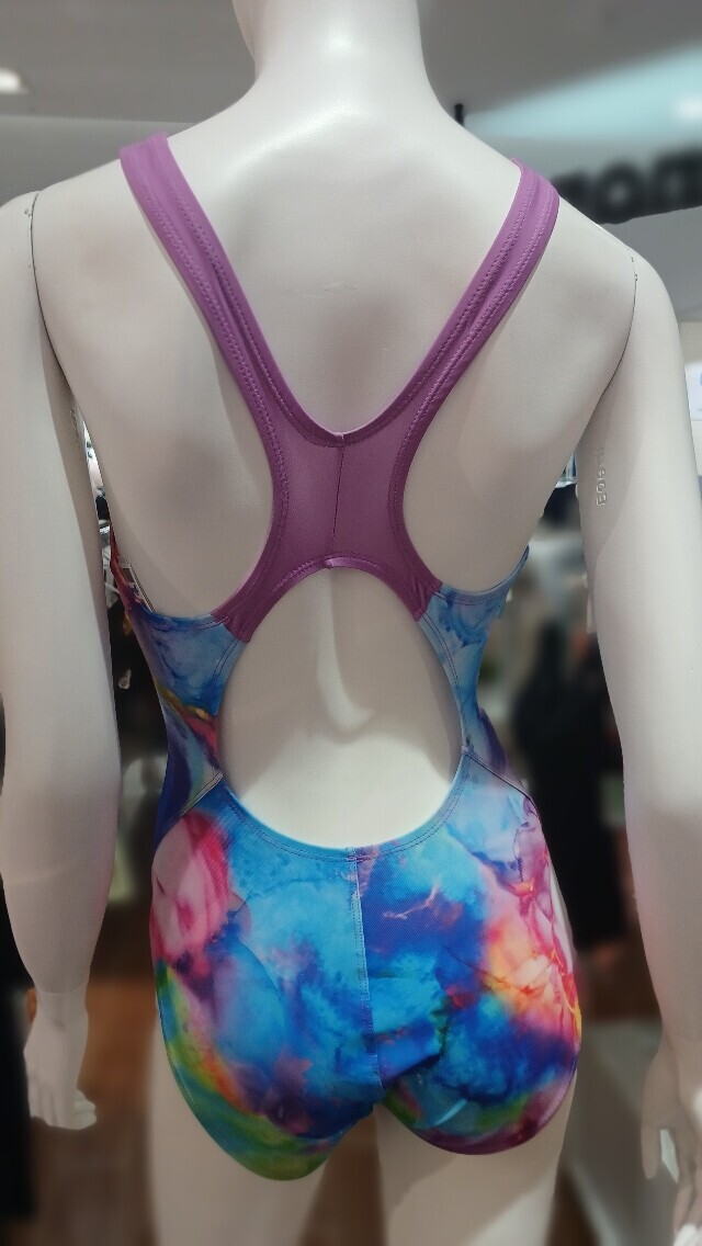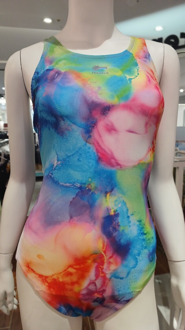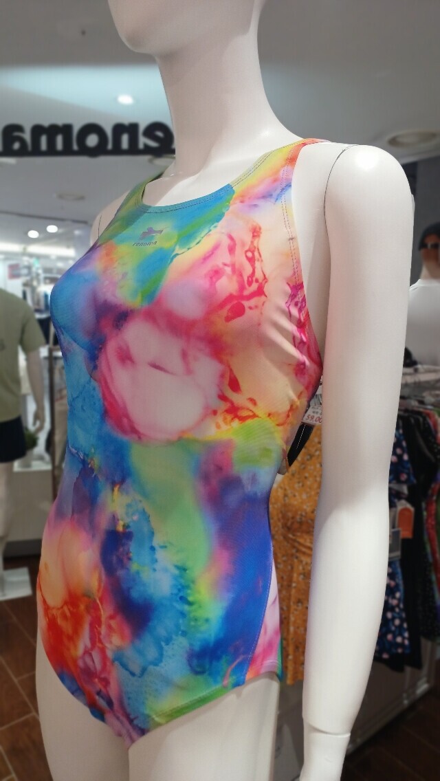 물나염 프린팅이 더욱 화사해 보이며 체형커버에 도움이 되는 미들컷 X백 수영복 입니다.