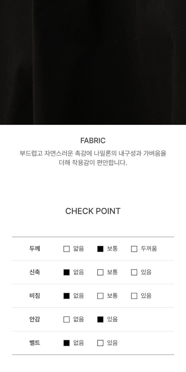 1. 제품 소재 (섬유의 조성 또는 혼용률을 백분율로 표시, 기능성인 경우 성적서 또는 허가서) | 상품상세참조 |
