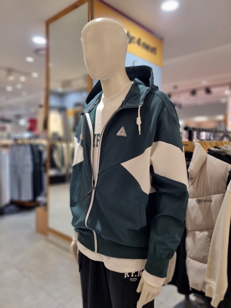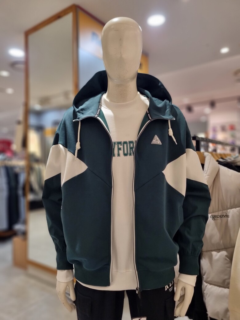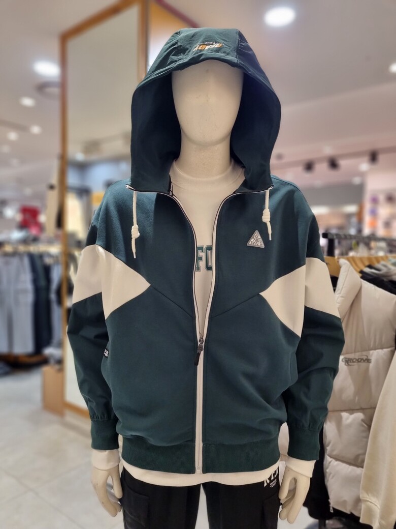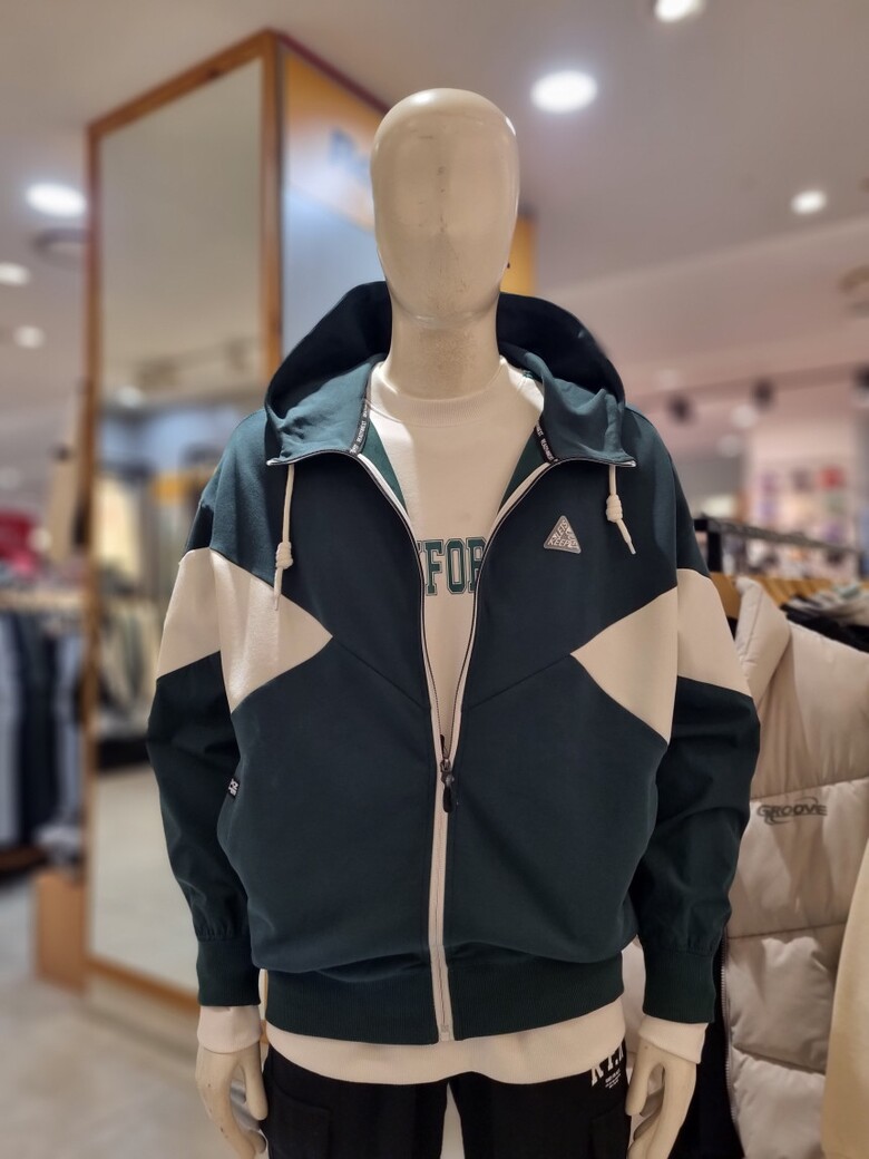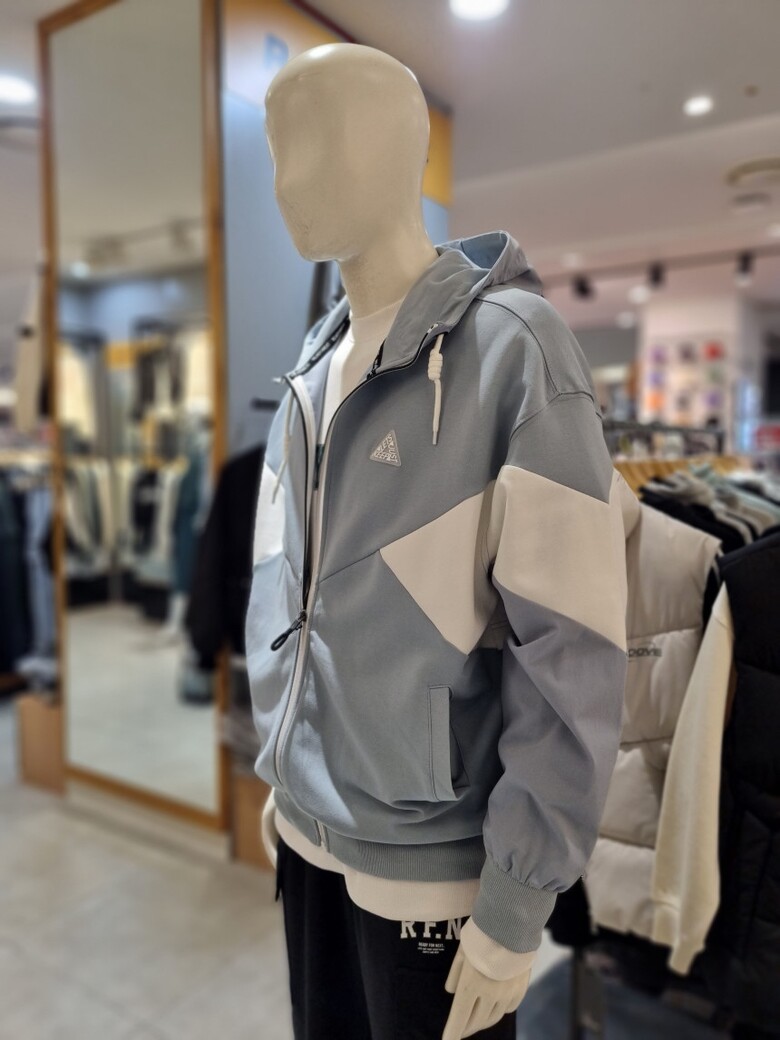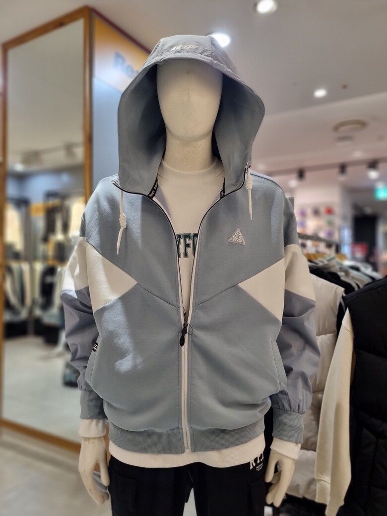 절개배색 후드 집업 입니다