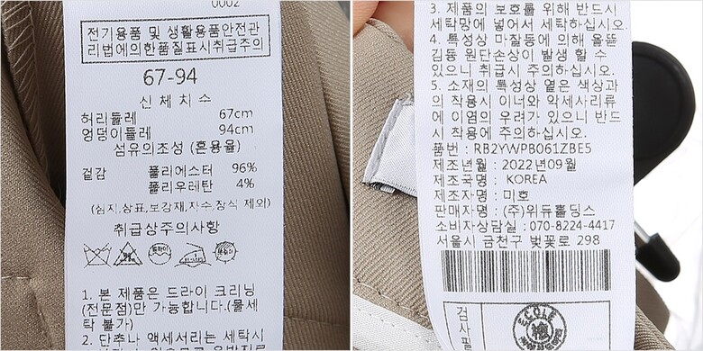 6. 세탁방법 및 취급시 주의사항 | 상세페이지 참조 |