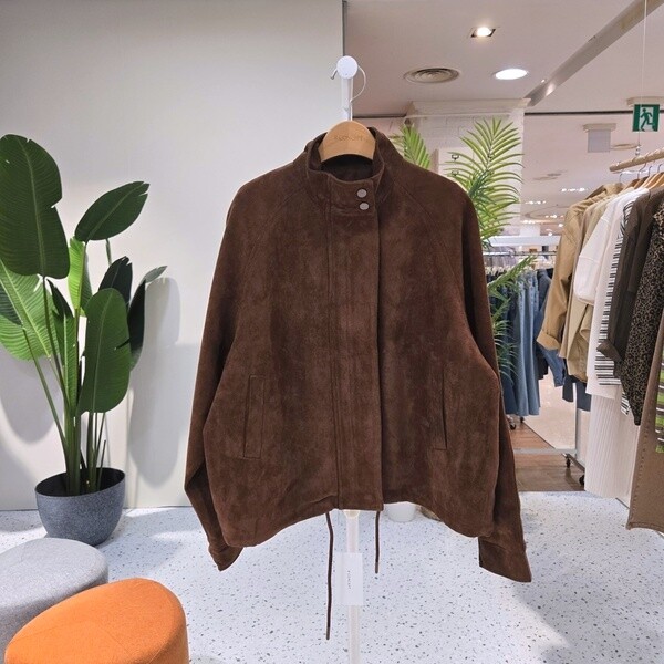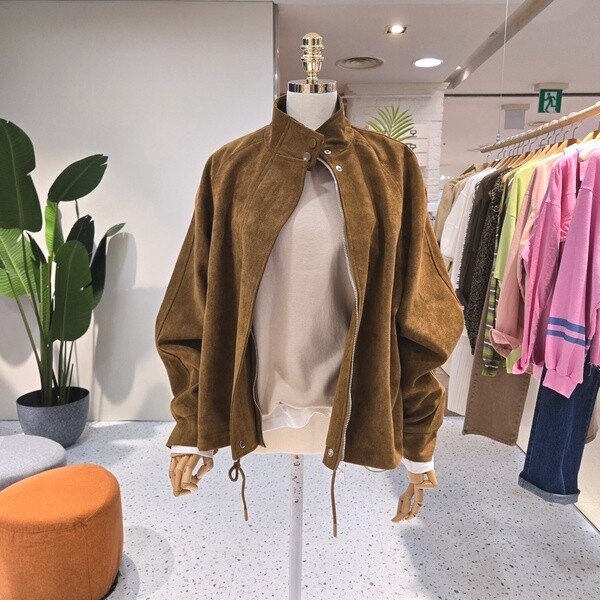 C25J7FJP023_루즈핏 하이넥 스웨이드점퍼
