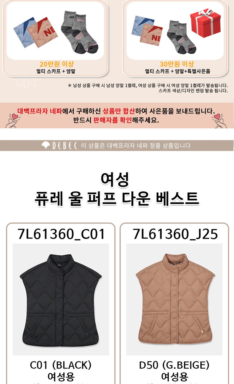7L61360_여성 퓨레 울 퍼프 다운 베스트